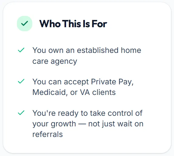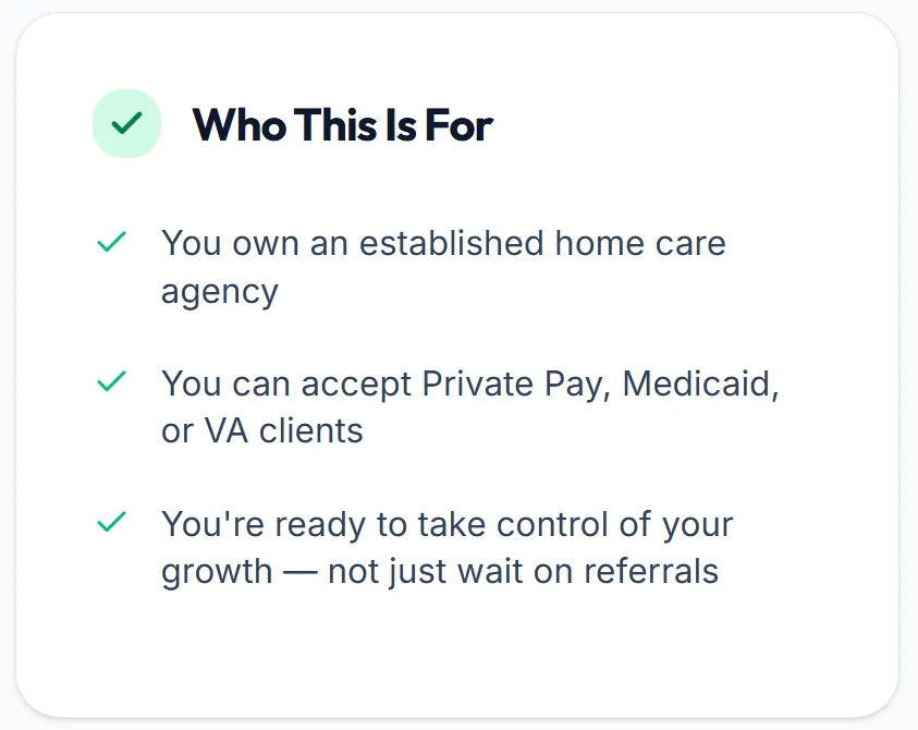 See how Love 'N Care added 71 clients in 6 months with our HomeCareGrow system. Watch the 6‑minute breakdown to see if it makes sense for your agency.
